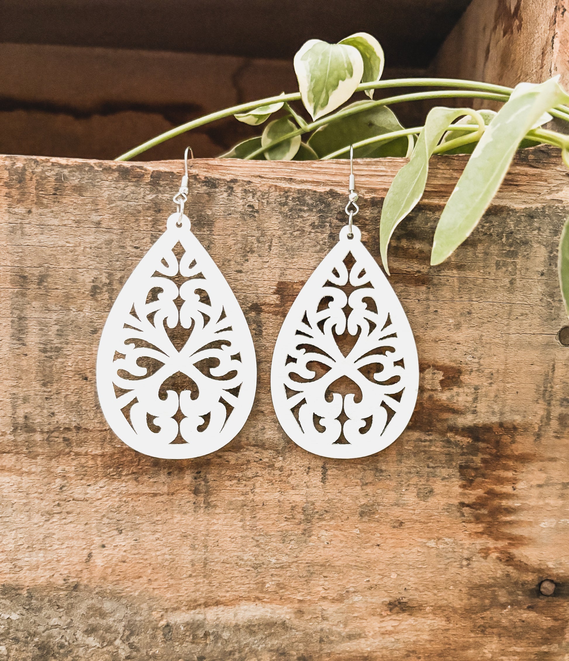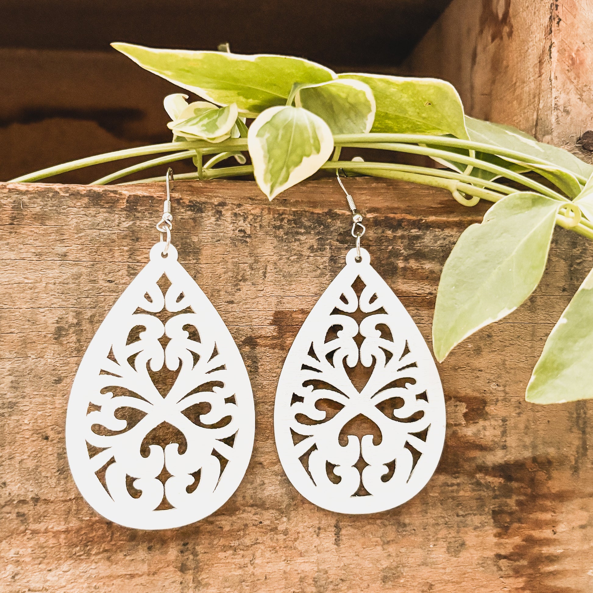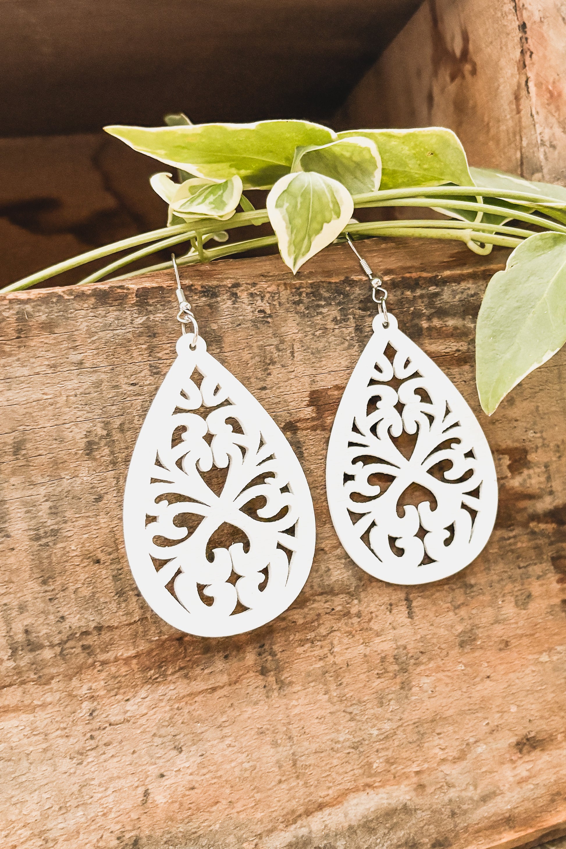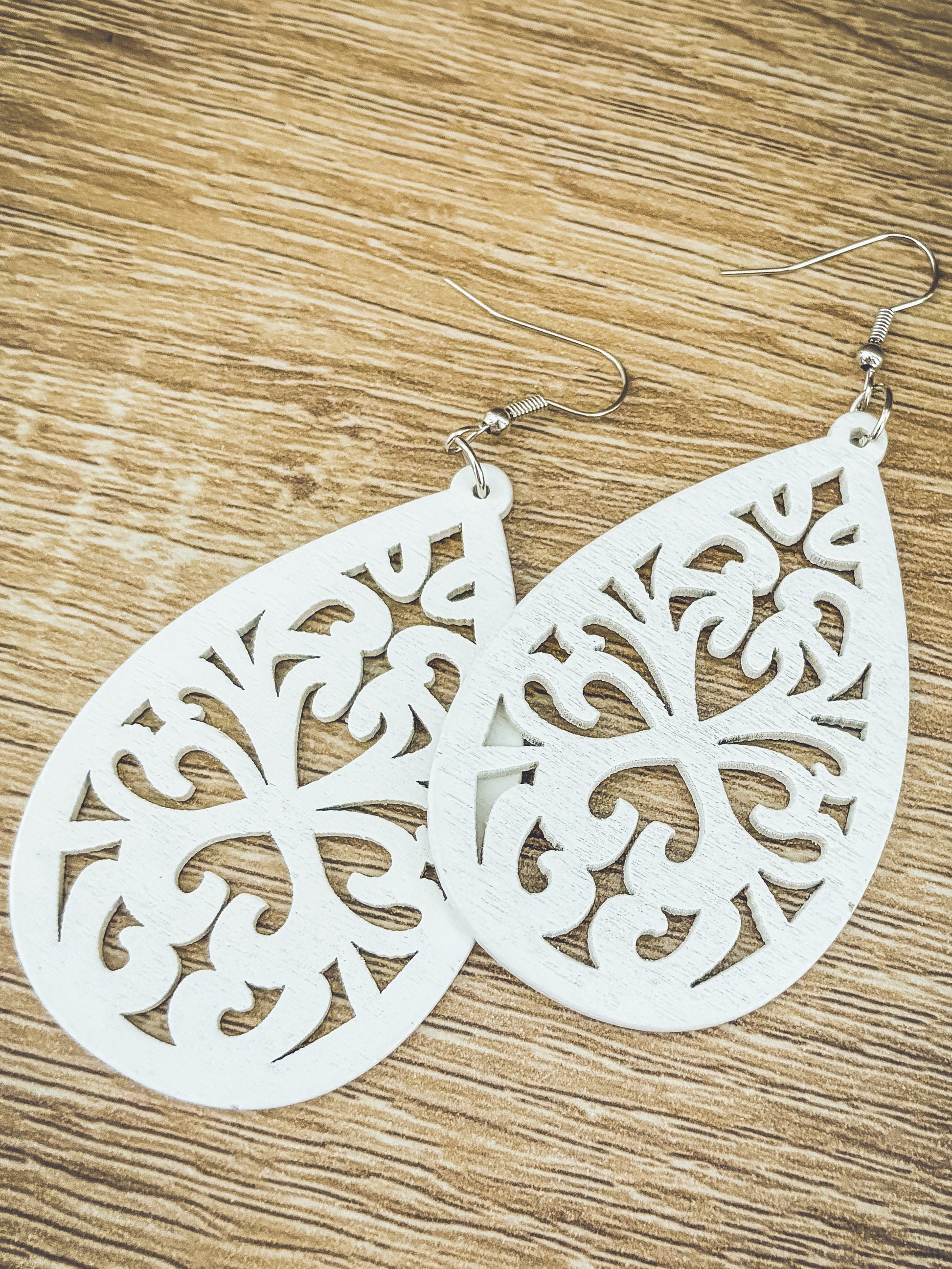 Introducing Beautiful White Wood Laser Cut Drop Earrings, a stylish and elegant accessory that adds a touch of natural beauty to your look. Crafted with high-quality materials, these earrings feature beautiful laser-cut white wood in a unique and intricate design that adds an extra level of sophistication to any outfit.