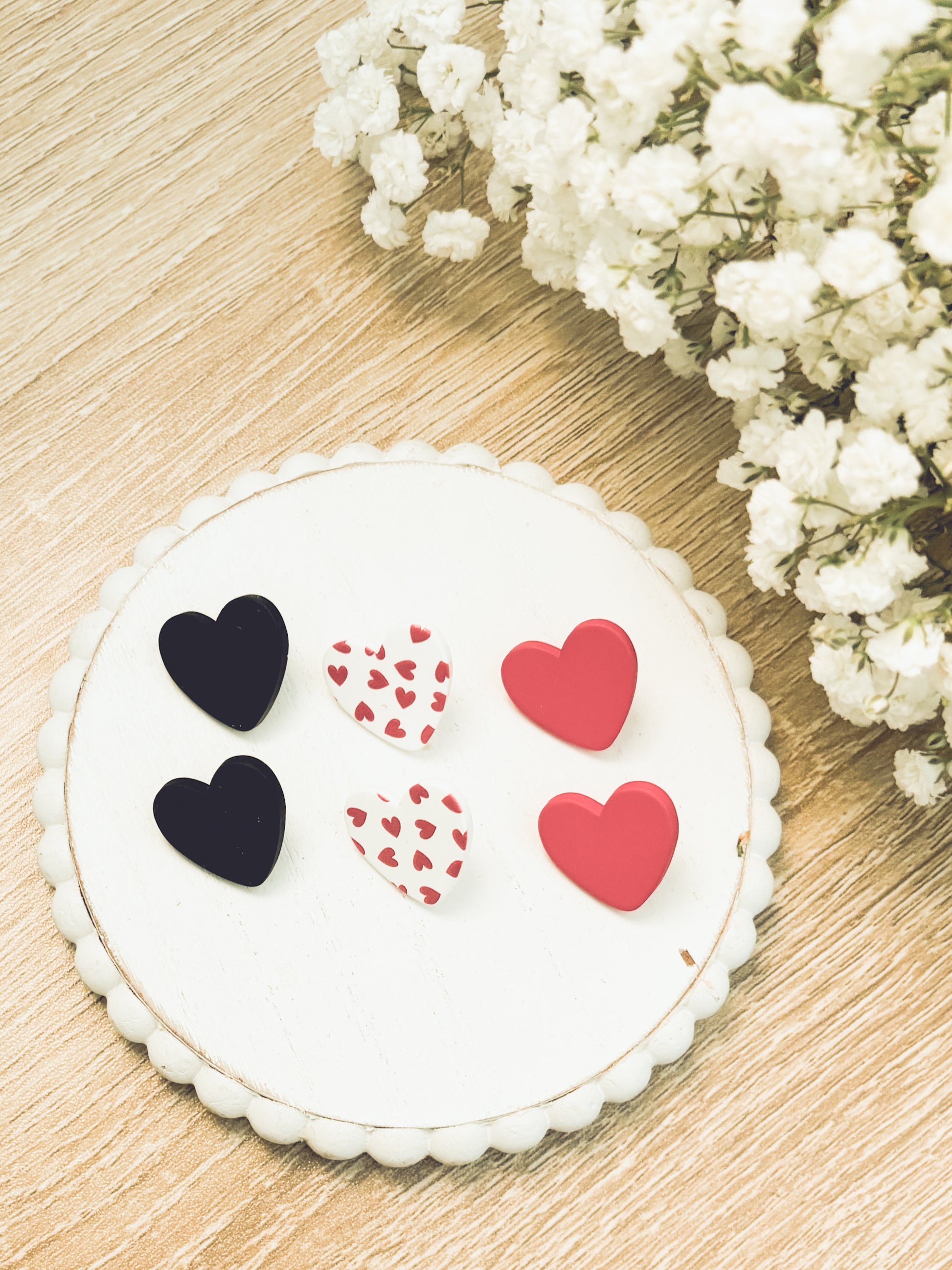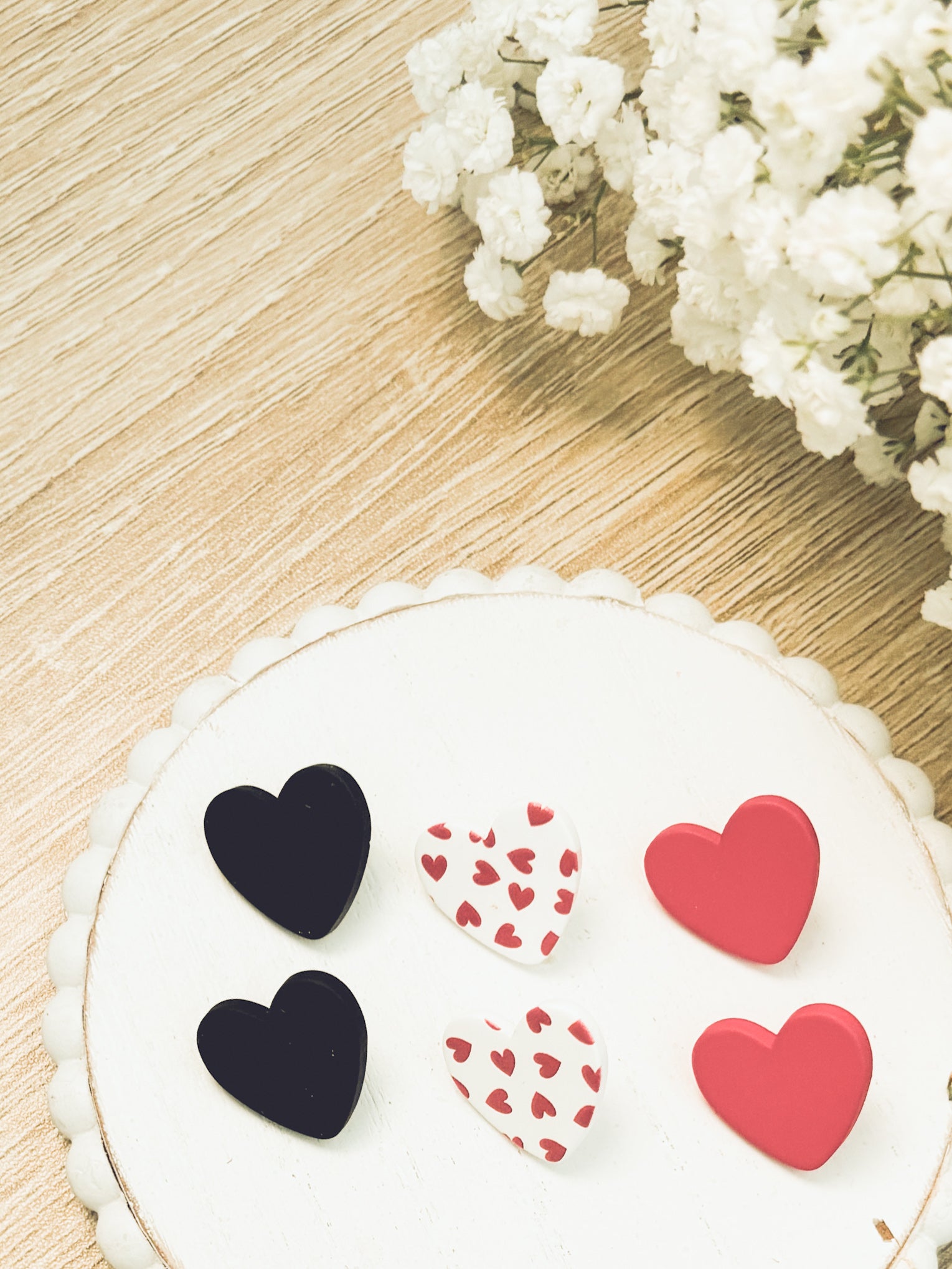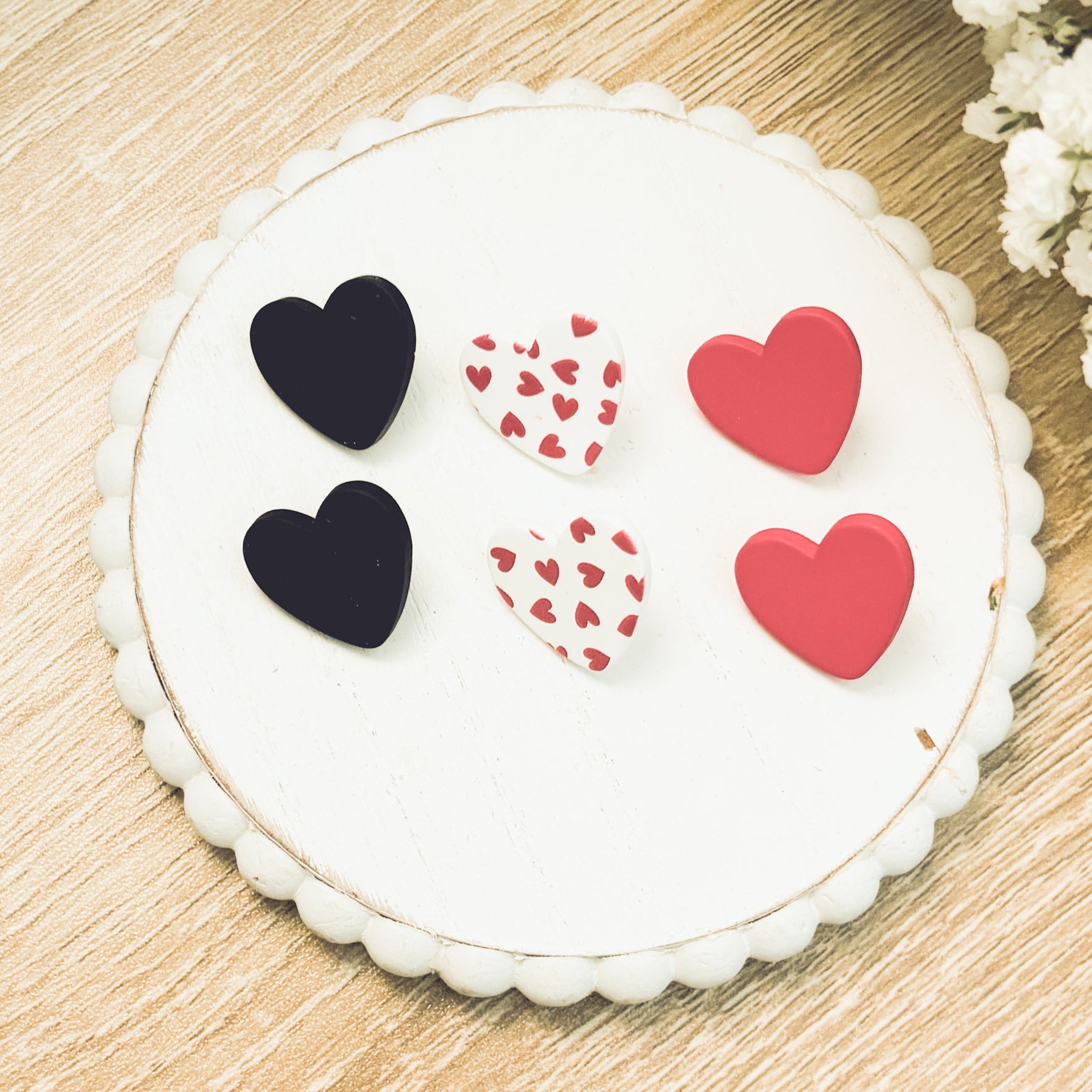 Embrace the essence of love this Valentine's Day with our Charming Heart Trio Set: Red, White, and Black Stud Earrings. Each pair symbolizes affection, blending vibrant hues with timeless elegance. Elevate your style and celebrate the season of love with this delightful trio, a perfect gift to adorn and cherish. Nickel sized