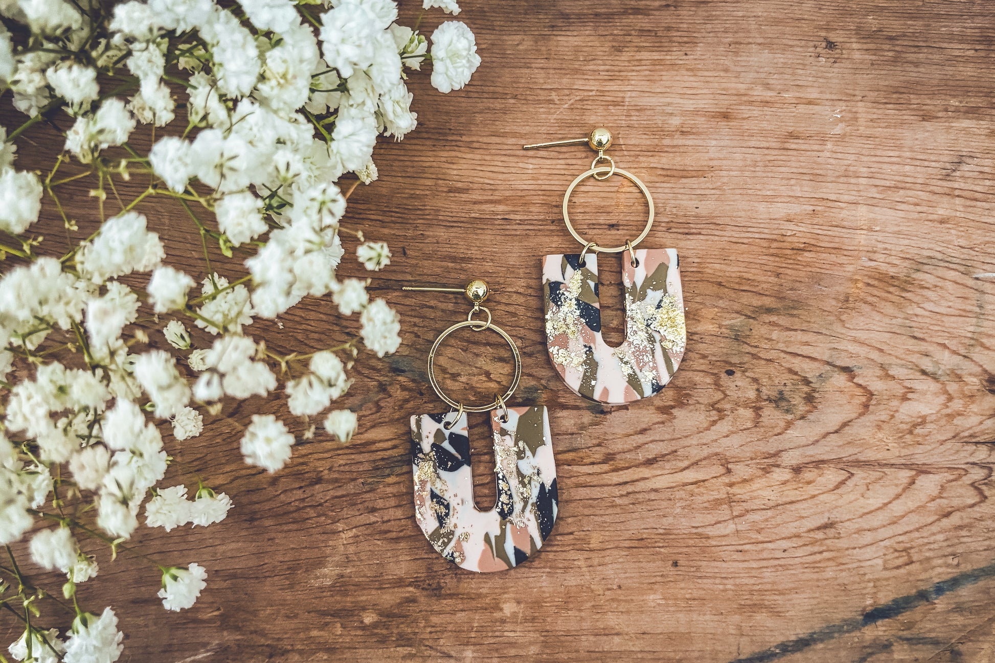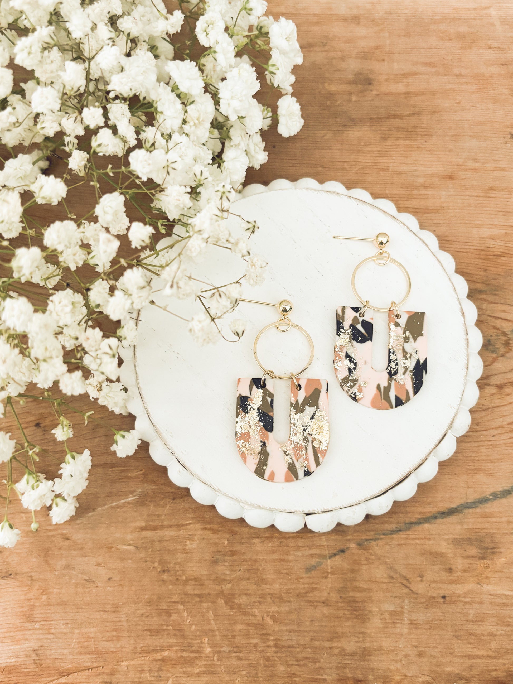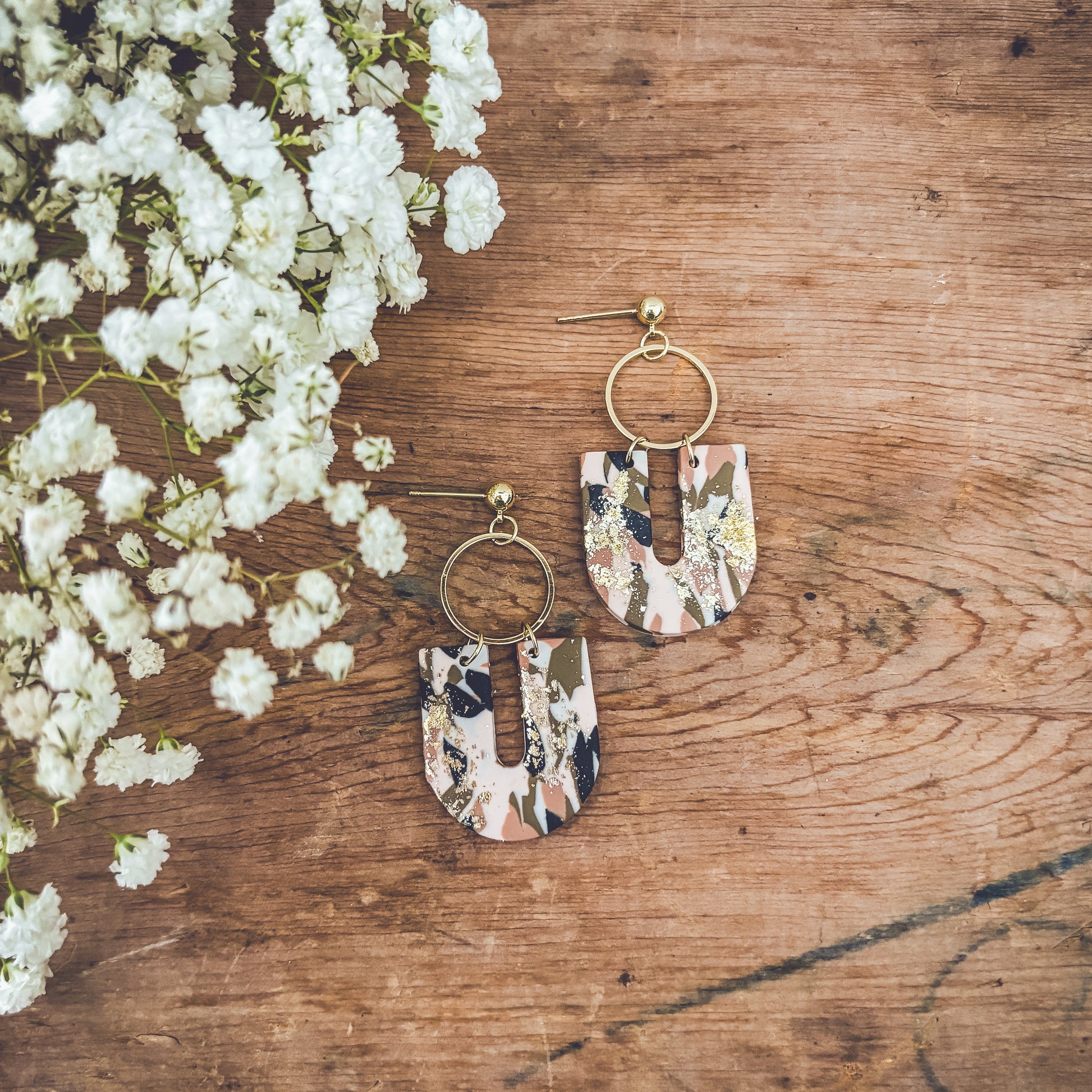 Chic gold and neutrals geometric earrings for a touch of elegance. Elevate your style with these stunning statement pieces that effortlessly blend sophistication and trendsetting flair. 2 inches