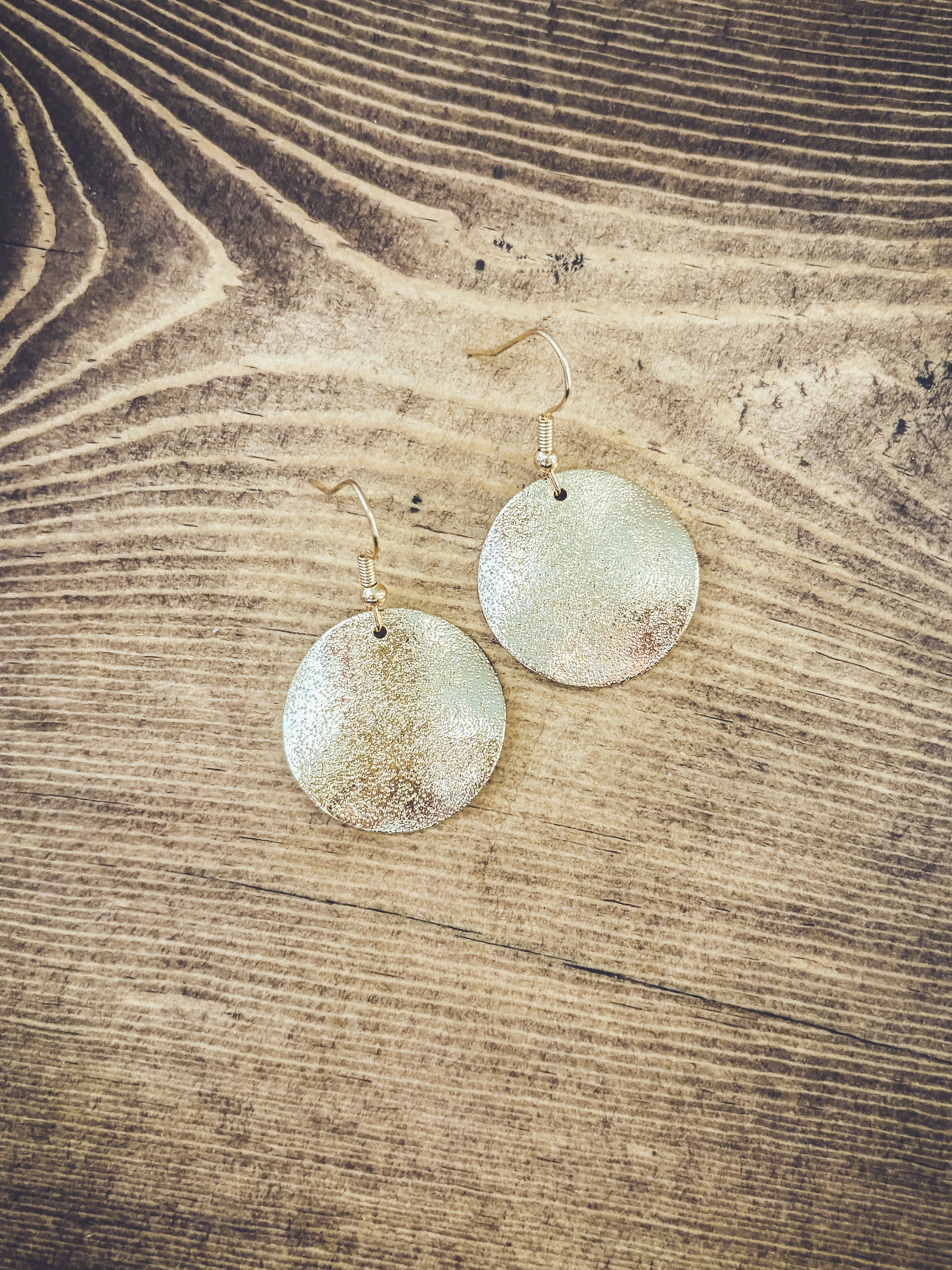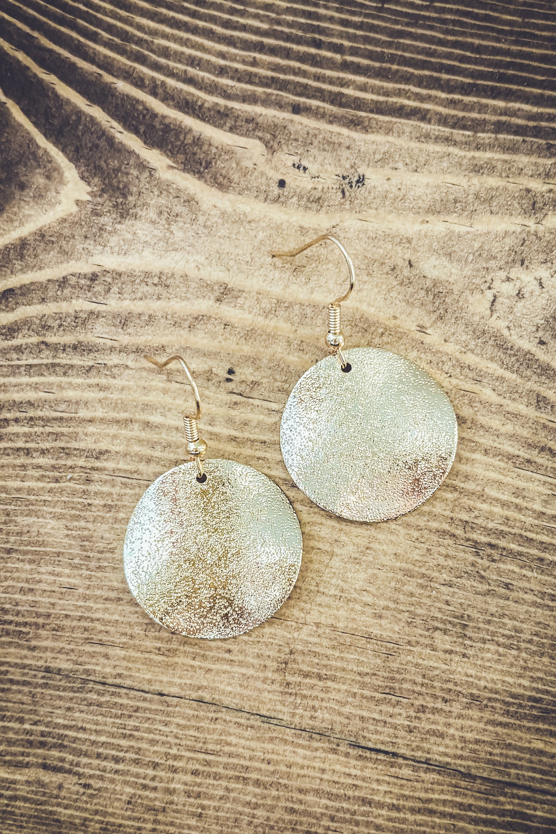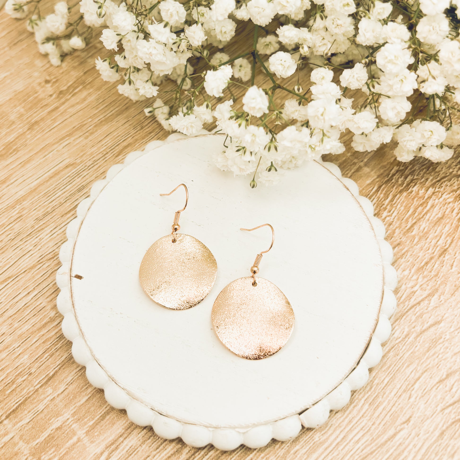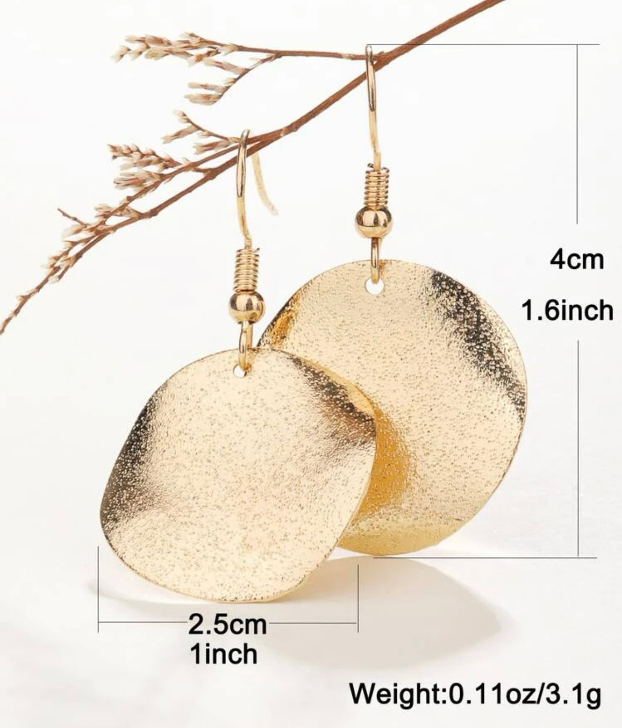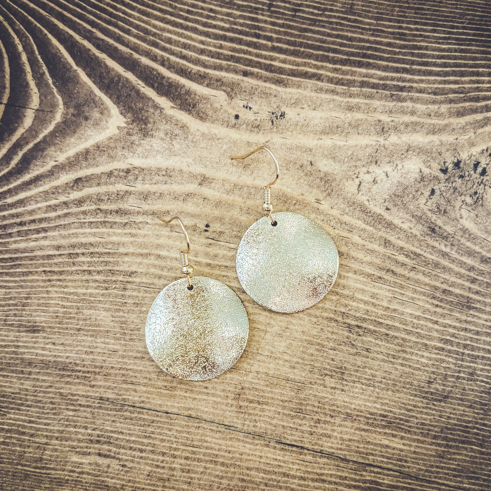 Elevate your elegance with our stunning hammered gold drop earrings. Crafted to perfection, these exquisite pieces seamlessly blend modern style with timeless allure, making them the perfect accessory for any occasion. Quarter sized.