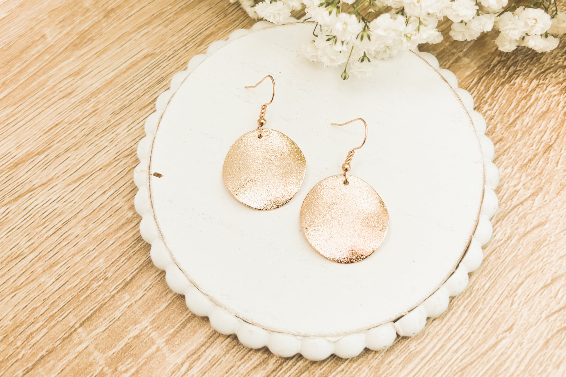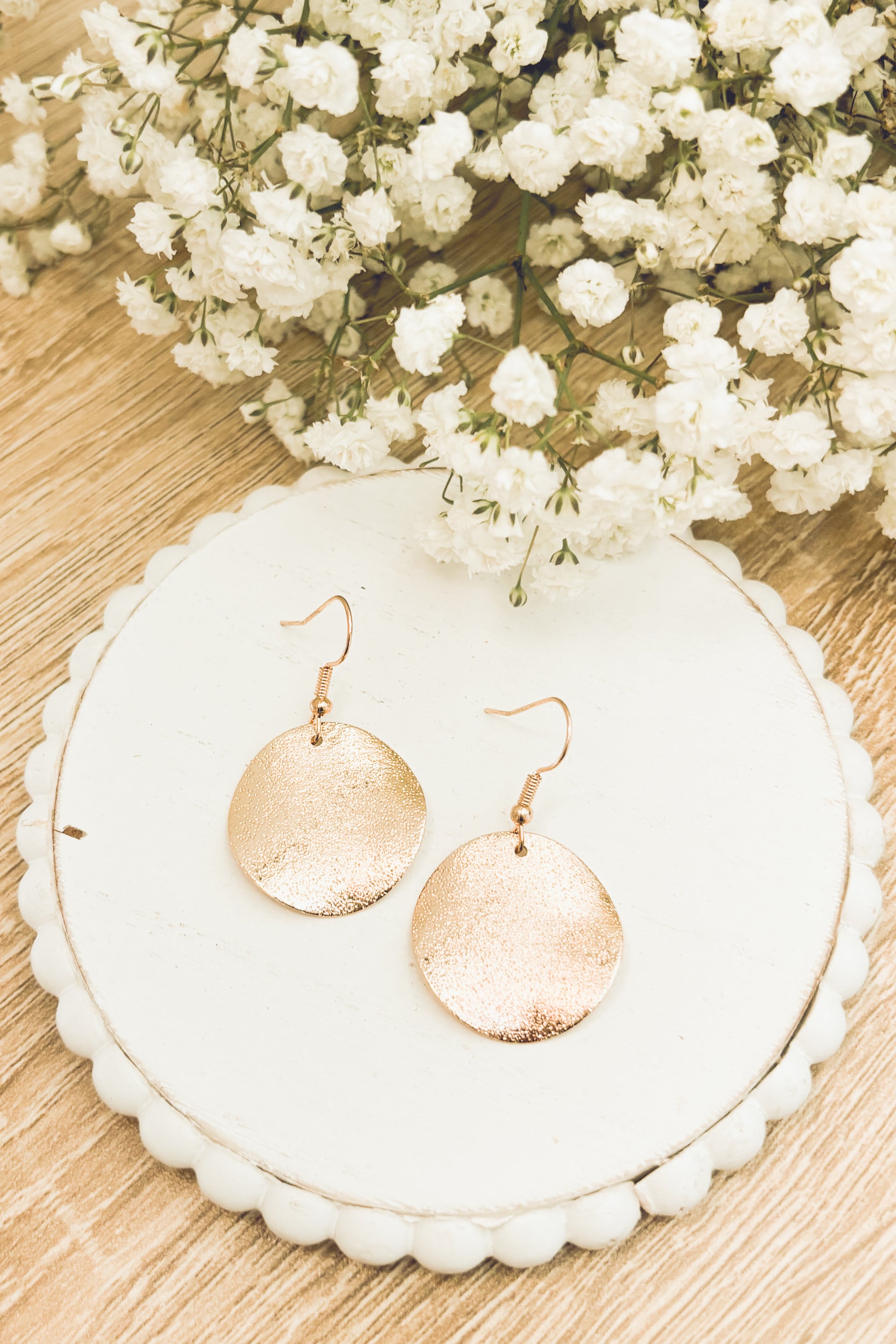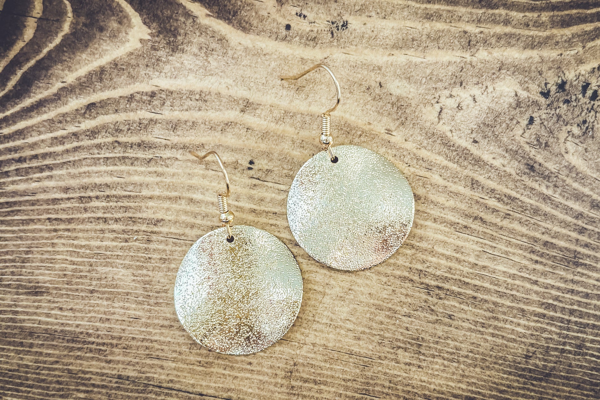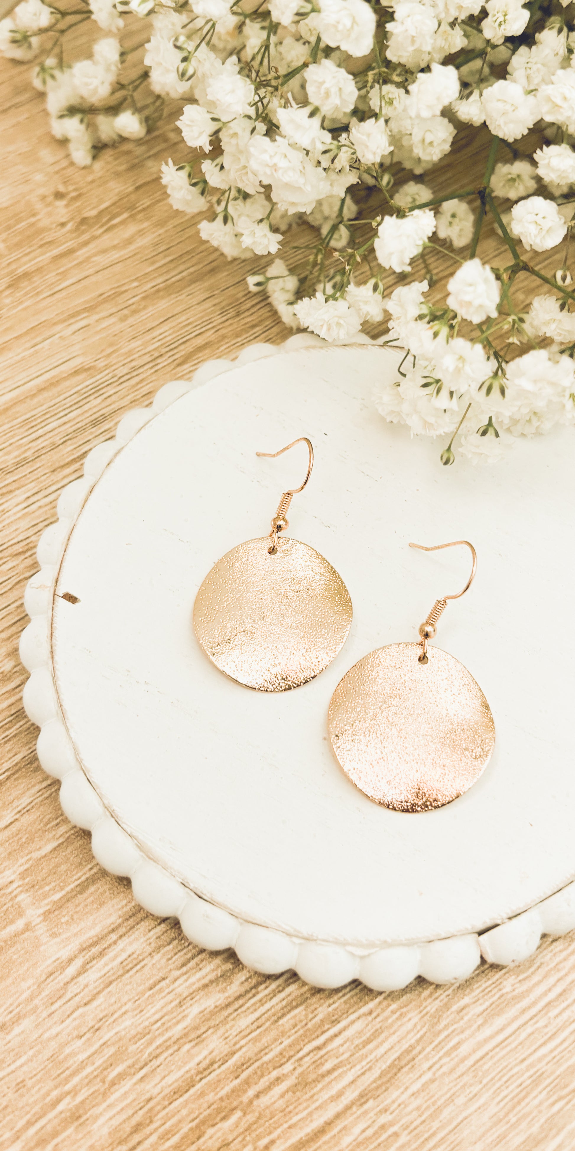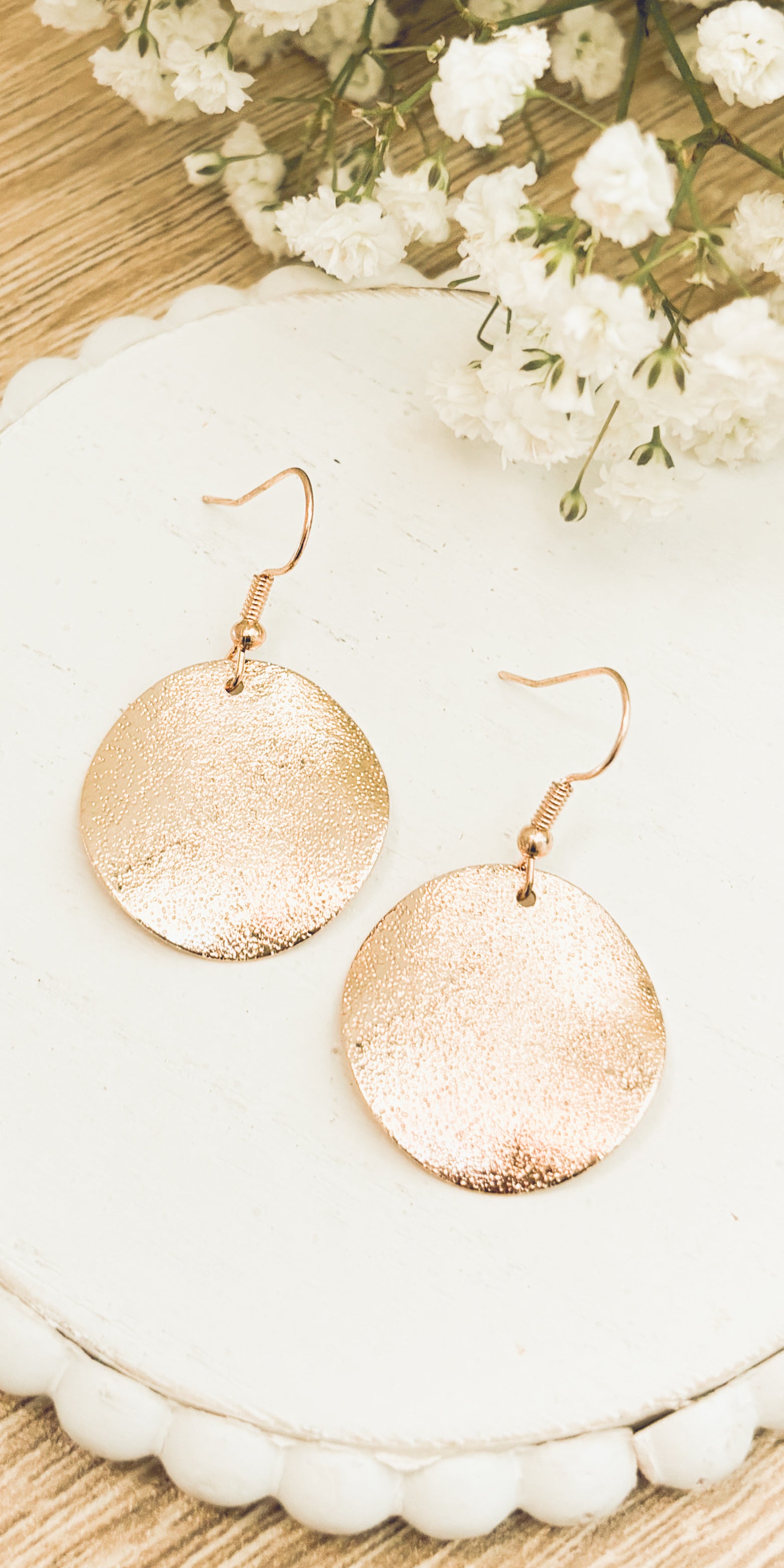 Elevate your elegance with our stunning hammered gold drop earrings. Crafted to perfection, these exquisite pieces seamlessly blend modern style with timeless allure, making them the perfect accessory for any occasion. Quarter sized.