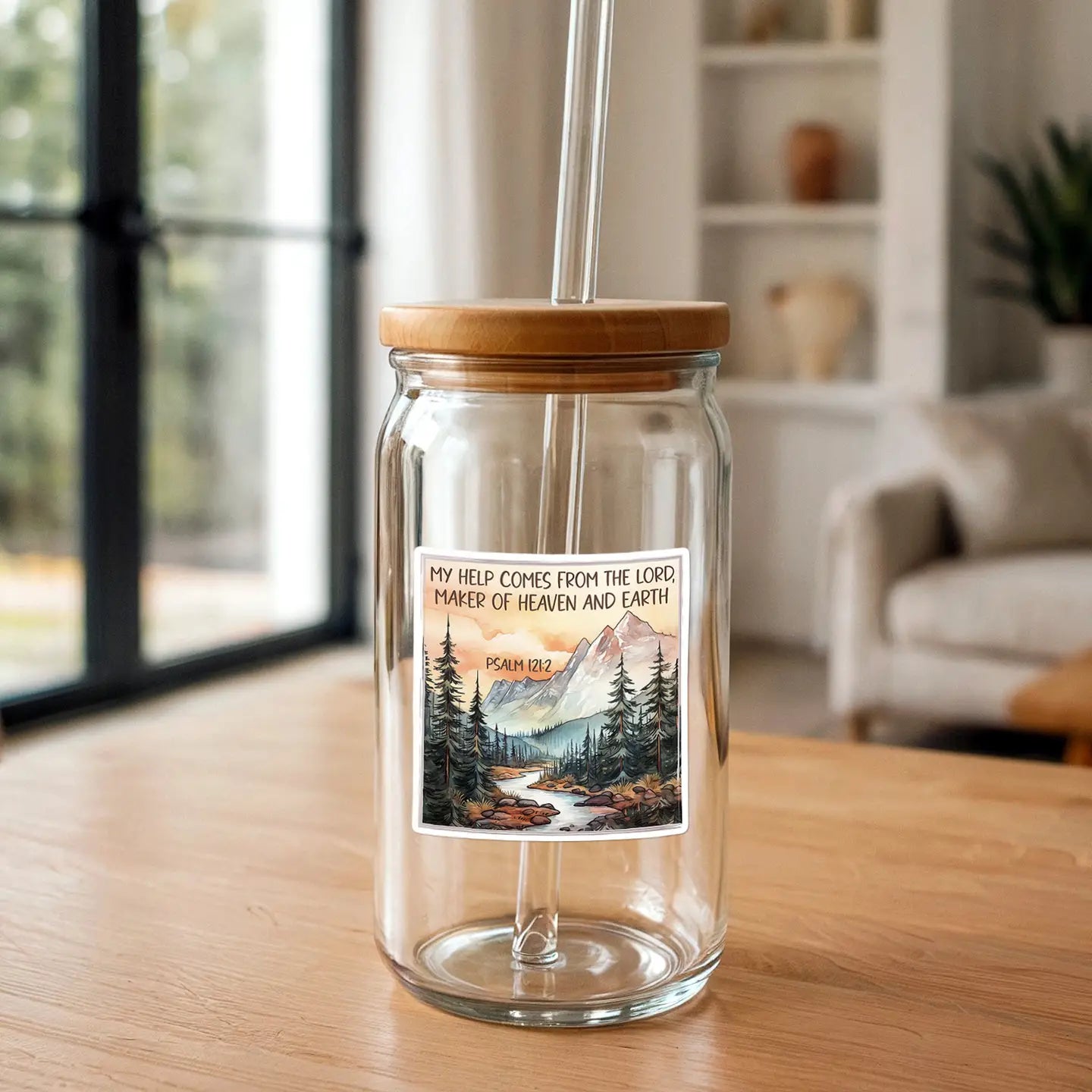Psalm 121:1-2 says, "I lift up my eyes to the mountains—where does my help come from? My help comes from the Lord, the Maker of heaven and earth." Sticker Specs: Dimensions: 2.9 x 3 inches Material: Waterproof Vinyl