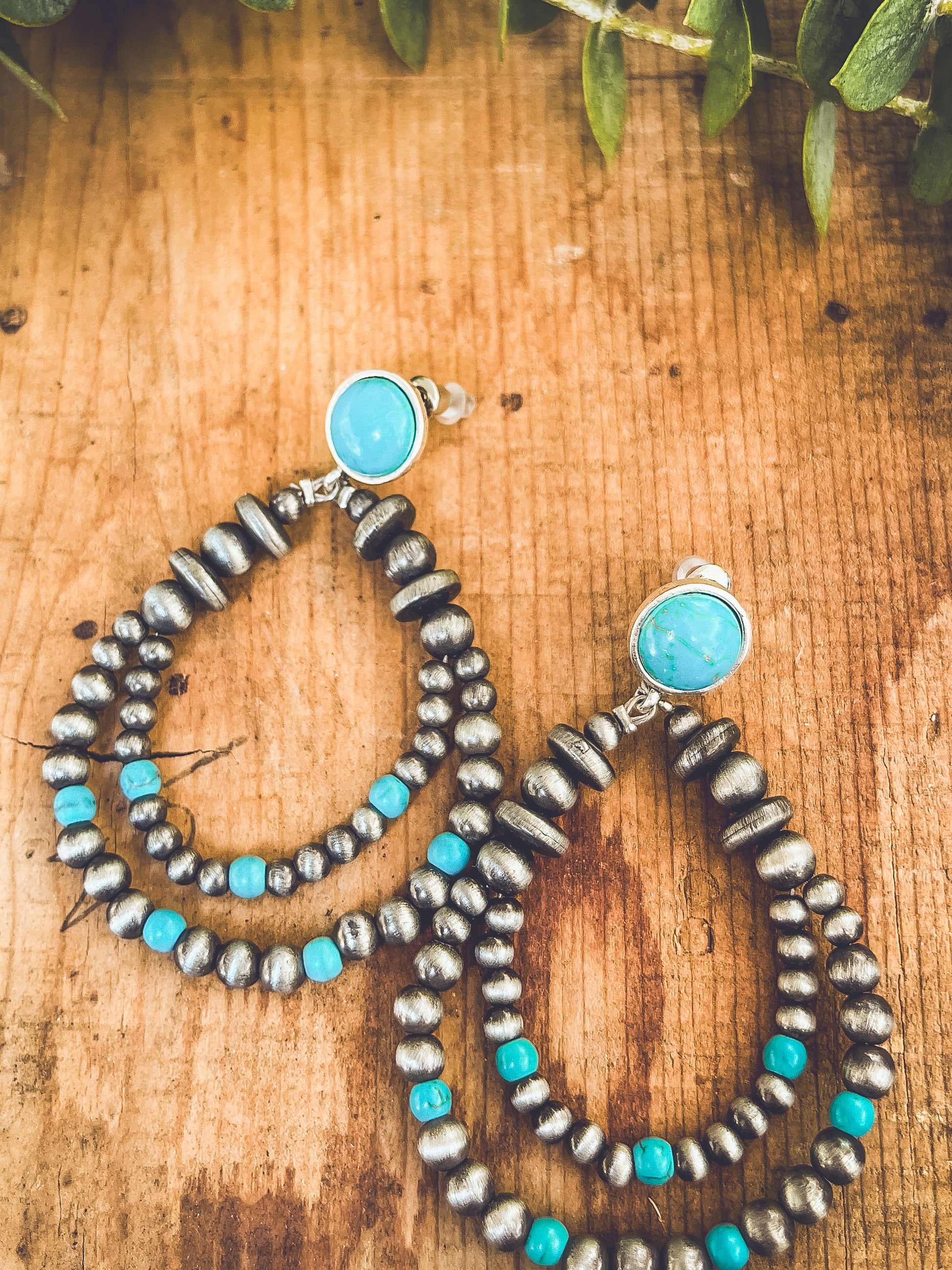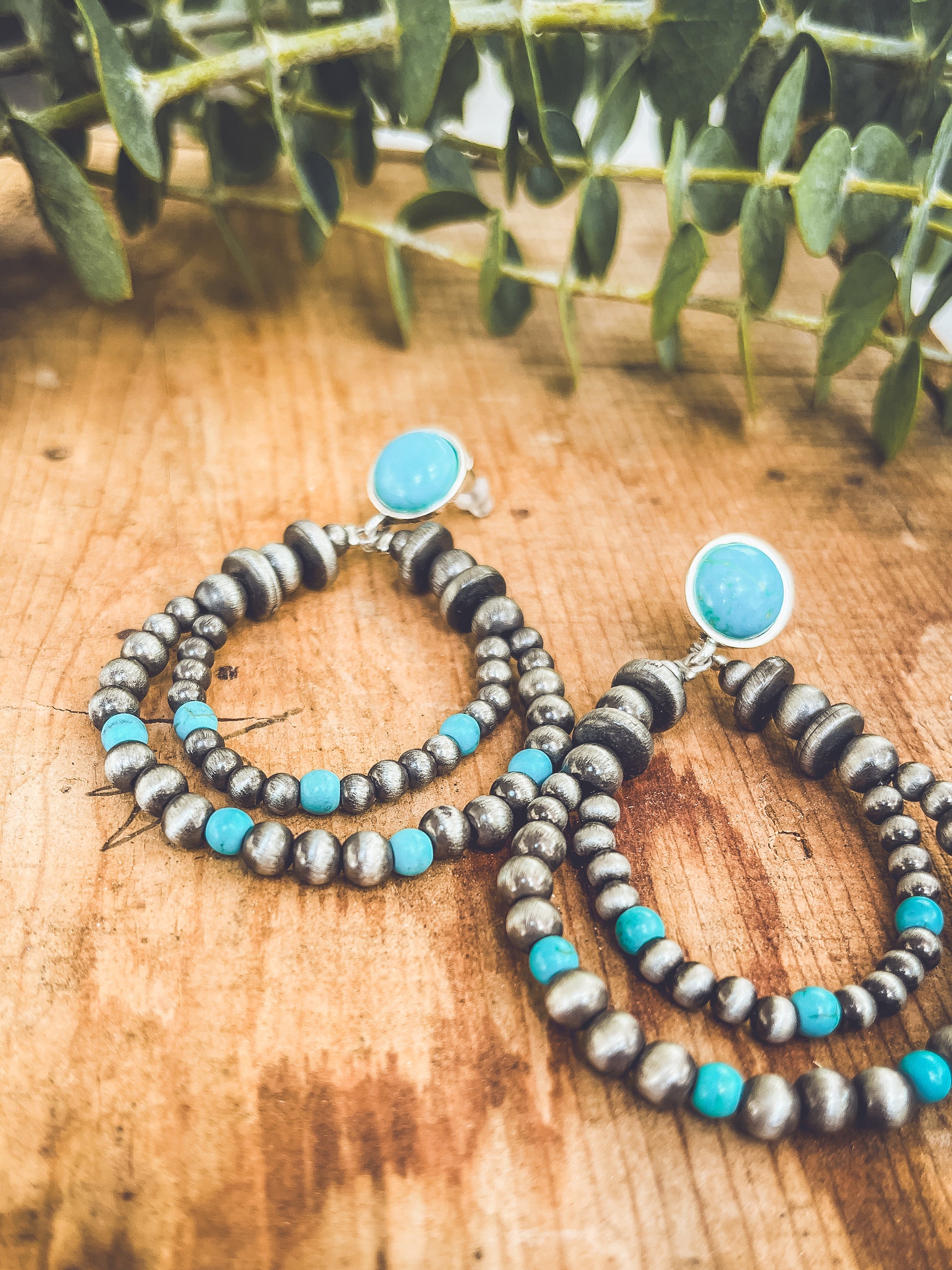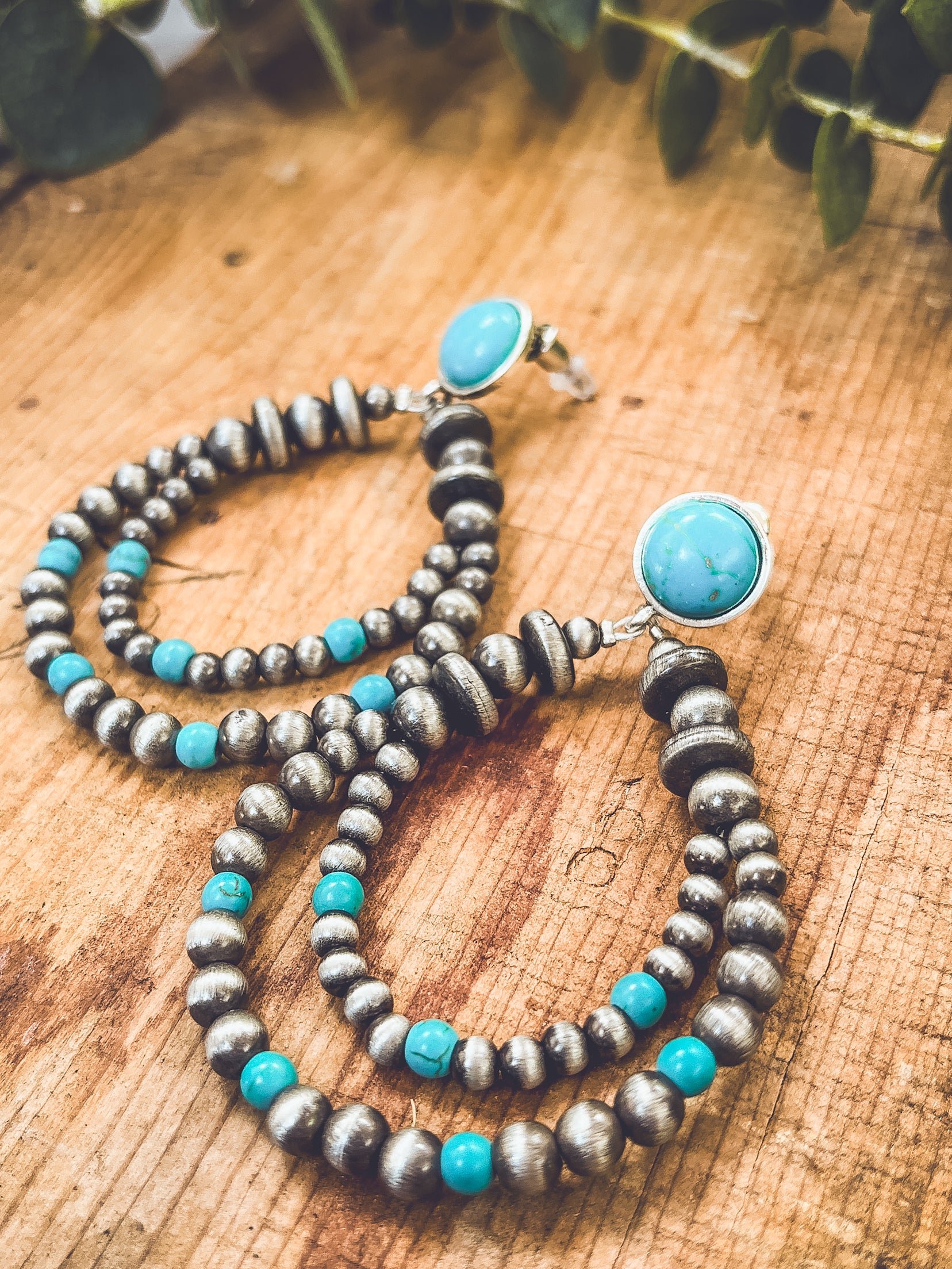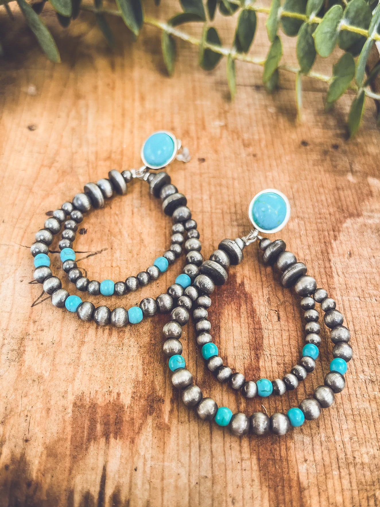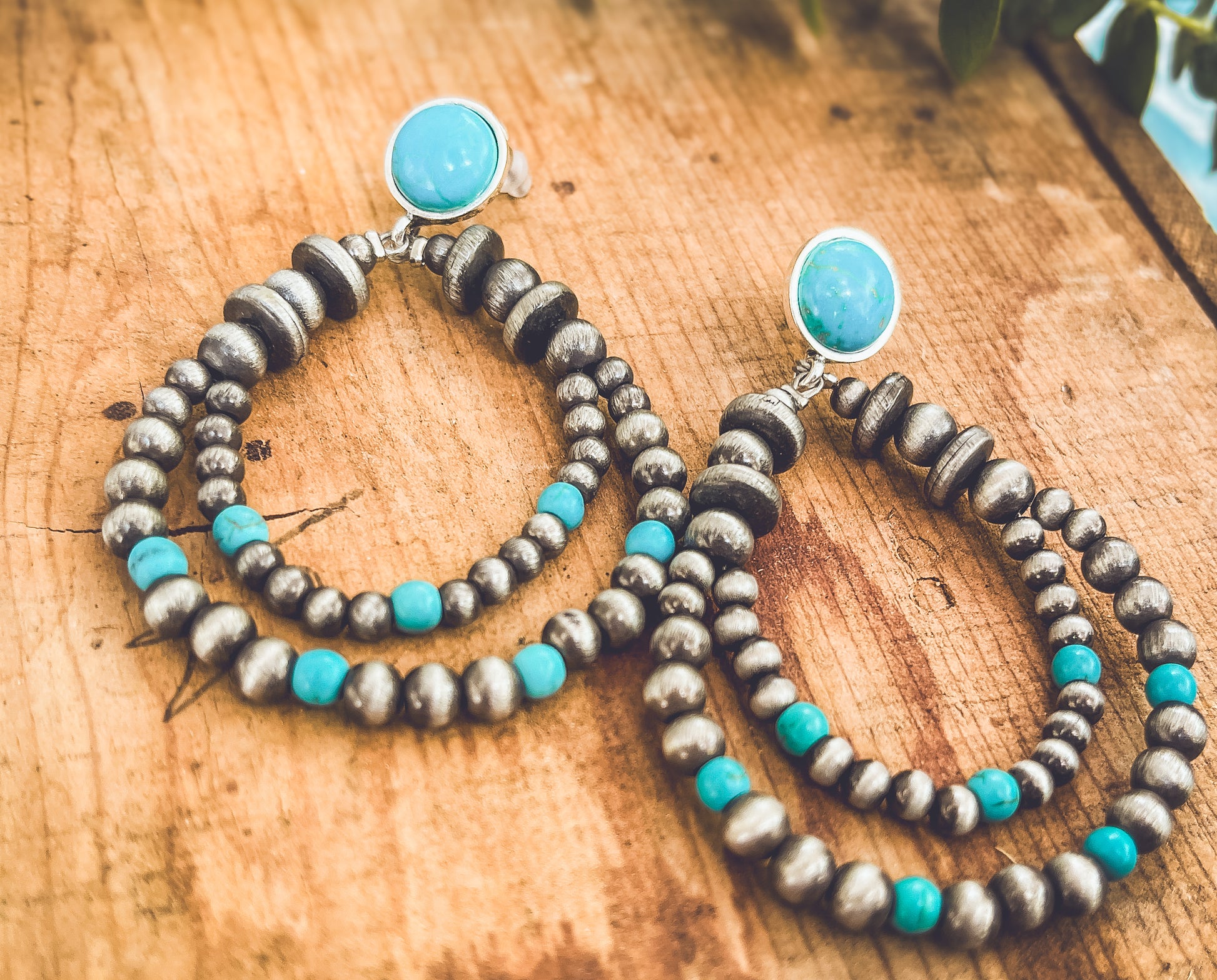 Elegant Navajo Pearl Earrings: Timeless beauty meets Native American inspiration. Exquisite design with lustrous faux pearls, adding a touch of southwest charm to any ensemble. Measure 2.3 inches in length.